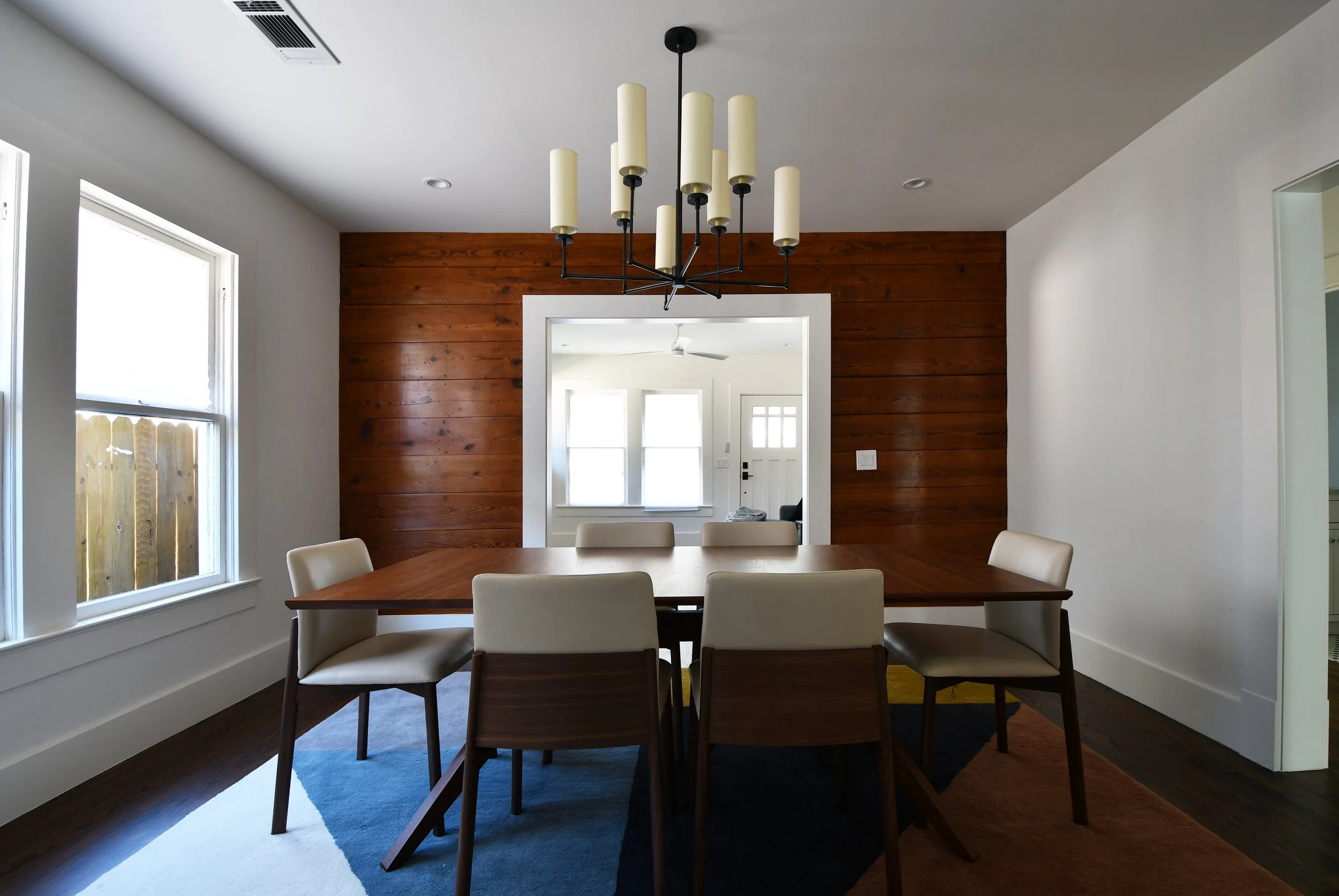 We deconstructed an old extension, and built a new one-story extension to create a 3 bed 2 bath bungalow with a big back porch.